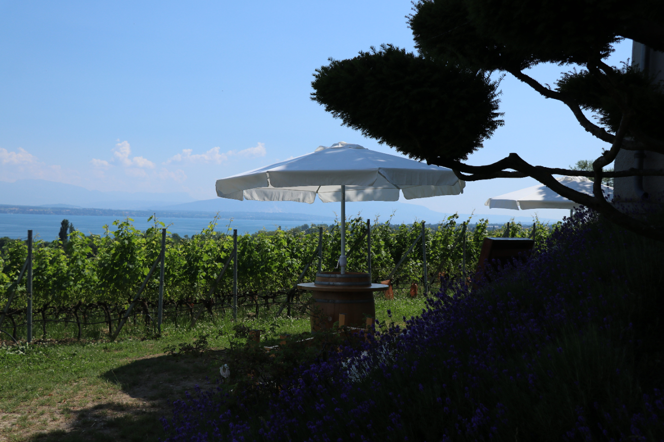 Dans les caves voûtées du château ou au bord des vignes face au la Léman et au Mont Blanc